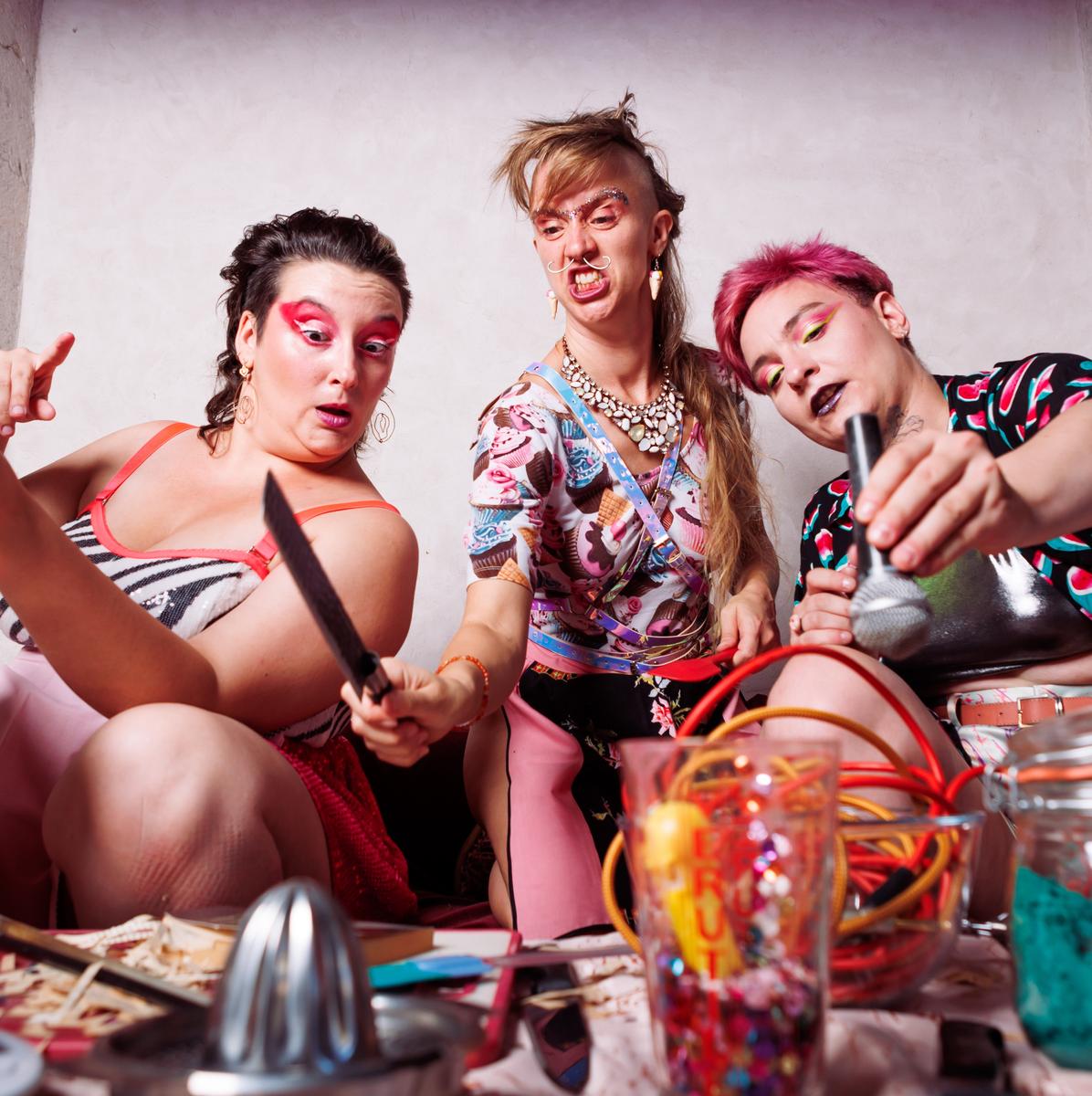 Triade lyonnaise décalée à la frontière de plusieurs esthétiques : Ariette, Butch et Konda se revendiquent du Punk à chat·te·s et du Gangsista rap. Imaginez des gros kicks et des snares qui claquent tout droit sortis d’une bonne boîte à rythme, des riffs de violons qui ressemblent à ceux d’une guitare mais en pas pareil, un violoncelle vrombissant de basses à vous en faire vibrer le thorax, des textes cinglants aux punchlines sucrées salées.