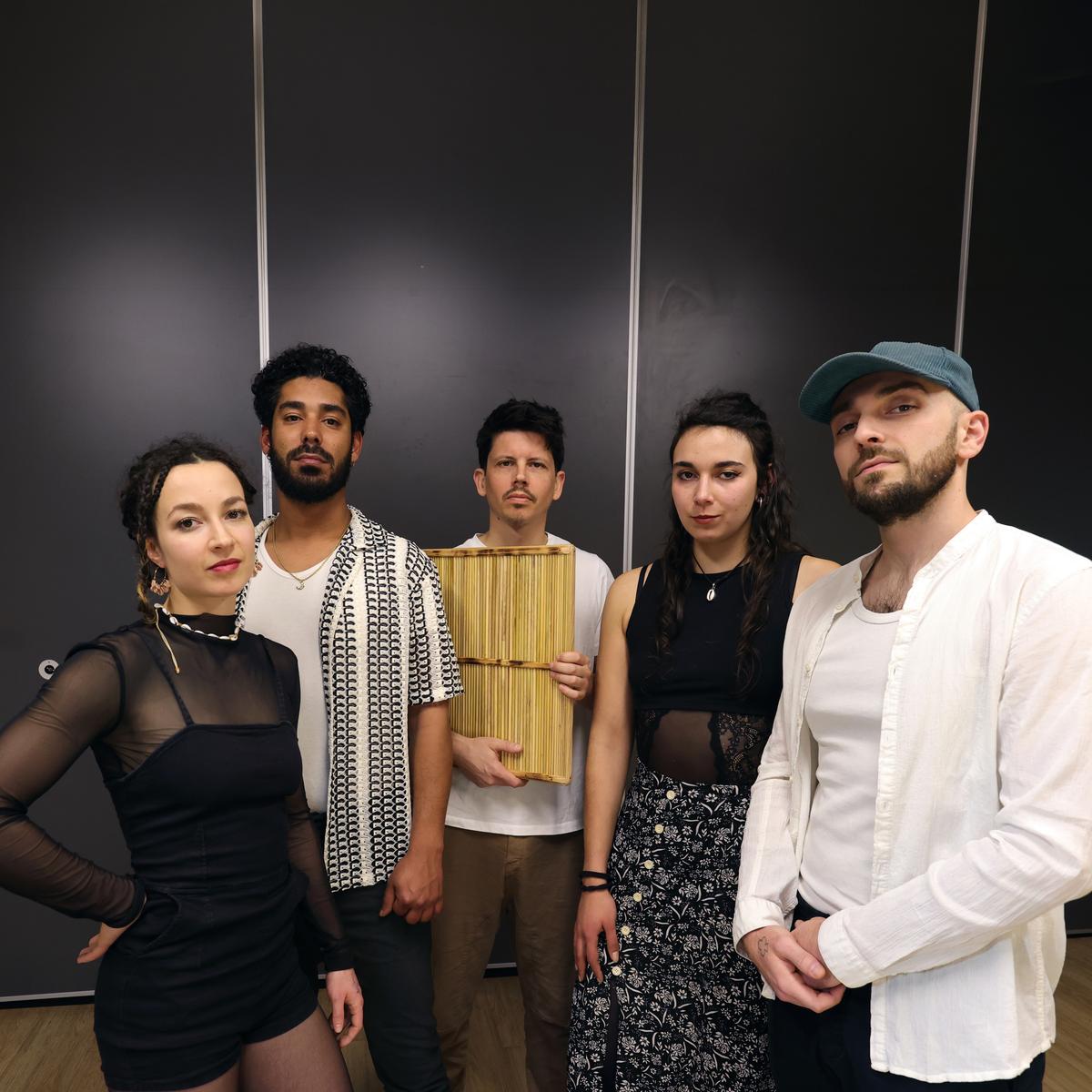 Insen. Proche du label electro Shouka (Amar 808, Nessym, Aïta mon Amour), le groupe développe un projet scénique où la transe est centrale, faisant dialoguer le Mezwed, le Targ, la Hadra ou encore les grooves populaires avec des textures modernes immersives. Un syncrétisme organique, libre et poétique, une musique de la présence, du corps et du langage, une recherche de la vibration juste, du souffle collectif, de l’émotion ancrée dans le rythme et le propos. InSen tisse une musique de l’entre-deux mondes, profondément ancestrale- tunisienne, résolument contemporaine.
