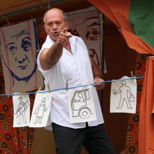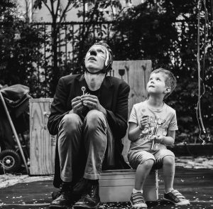 Dans cette confrontation cartoonesque, entre légèreté et pesanteur, à l’image de l’immensité de l’espoir et du poids de la réalité, notre clown amorcera le détonateur de ce qu’il est : un provocateur (…d’empathie) et un improvisateur de rue.