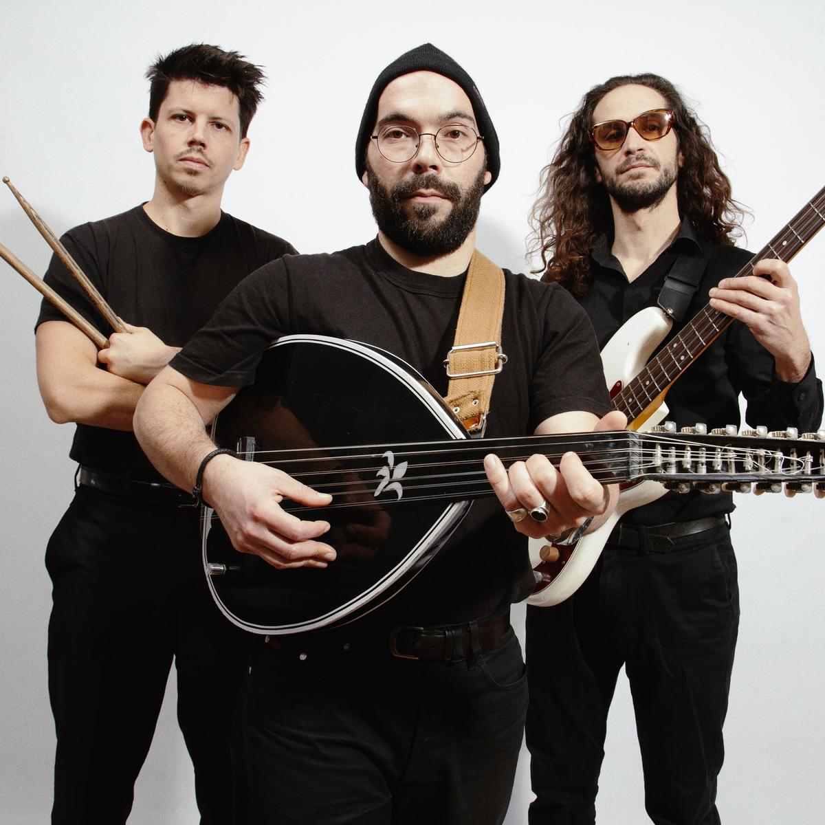 Sazman c’est le périple fou d’un oud électrique, d’une basse, d’une batterie et d’une voix saturée, embarqués à bord d’un ferry sur l’Adriatique et la mer Égée, puis dans une vieille golf turbo diesel sur un chemin bardé de nids de poule, de rochers intempestifs et de chèvres égarées, direction Lesbos et la Crête, en passant par la côte Turque et le Péloponnèse. Un trait d’union peu commun entre les racines de la musique Gréco-Turque et le son psychédélique des 70’s.